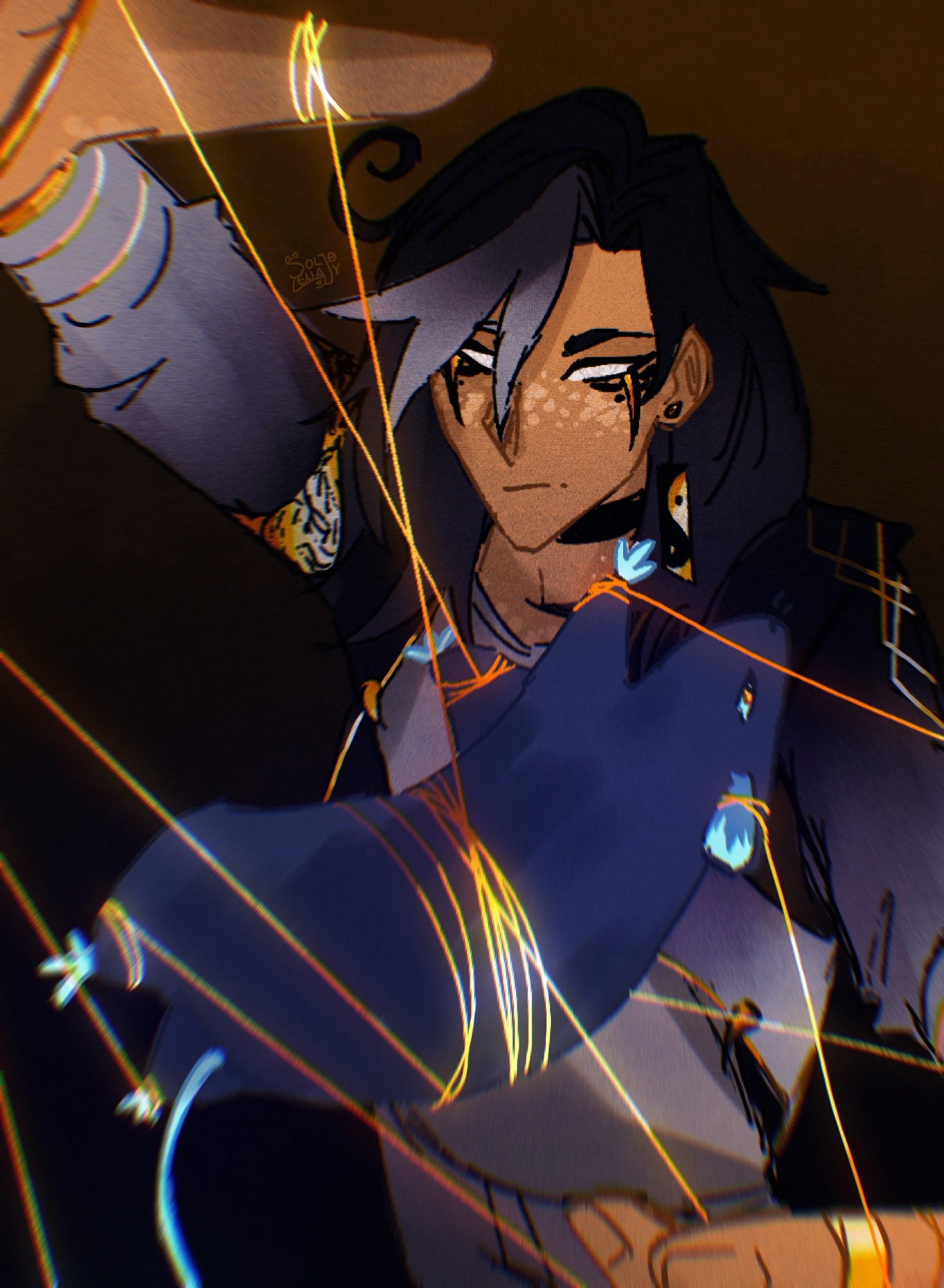 Talo wears his rage more often than his crown, with a sharp-tongue and sharper strikes. His gift is light itself, searing and blinding in his hands, a force as volatile as his heart. Talo’s determination draws people in like the blazing sun, and those who get close know his blunt honesty cuts deep enough to burn. But every light has its shadow, and his might just be the haunted memory of flames and a heart of shattered trust.