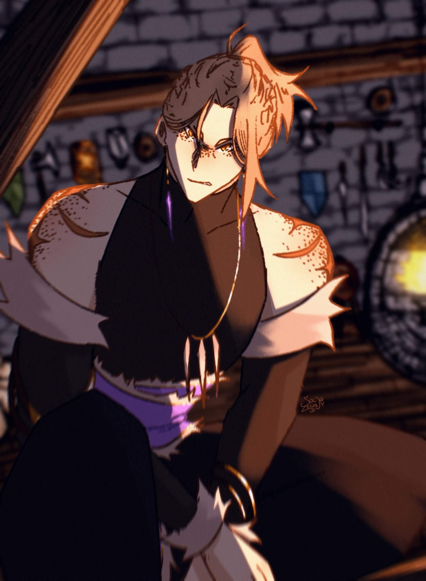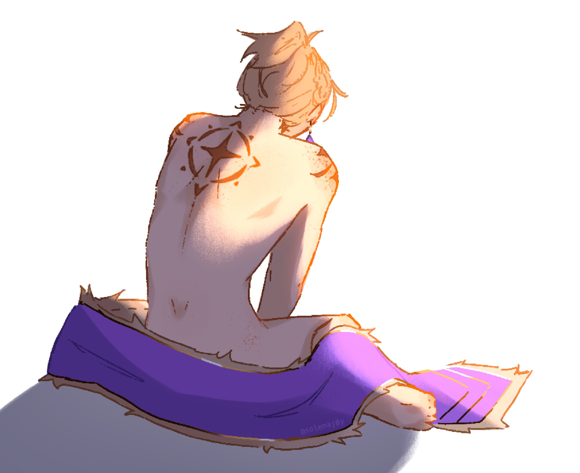 - Diamond/sun markings on his shoulders and back appeared when he received his magic as a child.